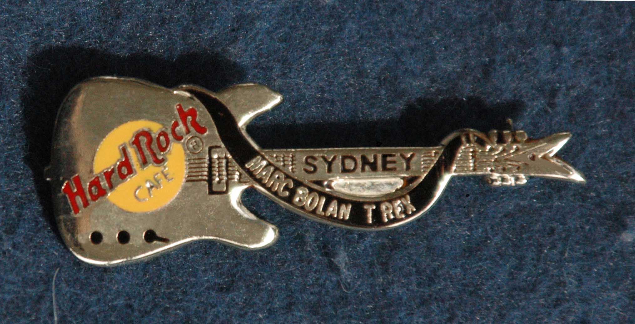 Below is a Veleno Guitar pin in the Hard Rock Cafe in Sydney in memory of the late Marc Bolan of T-Rex