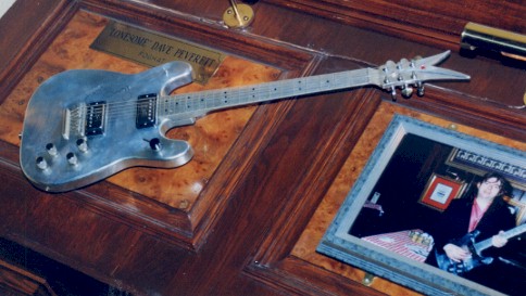 Below is Lonesome Dave Peverett of the group "Foghat" with his Veleno guitar which was hanging in the Hard Rock Cafe in Orlando, Florida until the Cafe was rebuilt in 1998. We were told that from there the guitar was moved to another Hard Rock Cafe, unknown to us at this time.