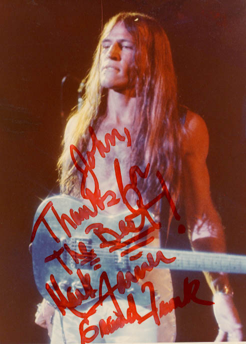 Artists known to have owned "Veleno®" all aluminum guitars include Mark Bolan of "T-Rex"; Eric Clapton; Greg Allman, Allman Brother's Band; Lou Reed; Johnny Winter; Ace Frehley of "KISS"; Todd Rundgren; Dolly Parton,; Sonny Bonno; Dan Ferguson, former personal guitarist for the Sonny and Cher shows (who claimed it was incredibly the best studio guitar he had ever used); Steve Albini of "Shellac" and producer of "Nirvana"; Pete Haycock of the "Climax Blues Band" who owned three Veleno®'s; Ray Monette of "Rare Earth"; Mark Farner of "Grand Funk Railroad, who owned three Veleno guitars; Ronnie Montrose of "Montrose" and "The Edgar Winters Band"; Lonesome Dave Peverett of "Foghat"; Jeff Lynne of "Electric Light Orchestra"; Mick Mars of "Motley Crue"; Terry Blankenship of "Daemon"; Austrailian punk aesthetic Ed Kueper "The Saints"; John Stone of "Chocolate & Vanilla"; Keith Levene of The Clash, and known for his outstanding guitar work in "PIL"; Robert Bond of "Rise"; Mark Klyne of "Loveday"; Robbie Krieger of "The Doors"; David Black of "Seduce"; Frank DeTulio of "Depot"; Mario DeMurier of "The James Gang"; John Olofson of "Babel"; David Surkamp of "Pavlov's Dog";  Ted Smida of "Out of Control; David Robinson of "The Cars", Veleno® guitar shown on their "Panorama" album; Johnny Depp; Frank Hannon of "Tesla";  Twiggy Rameriez of "Marilyn Manson"; Eric Erlandson of "Hole" who owns three Veleno®s;  and others not known at this time by Veleno.  If any names are spelled incorrectly, or if you know of any names to add to this list please e-mail the information.