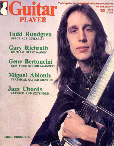 The cover of October 1977 issue of Guitar Player showing a Veleno® Ankh guitar and Todd Rundgren, Space Age Guitarist.