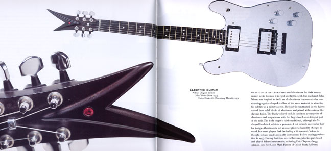 John Veleno, a/k/a Veleno, pioneered the field of aluminum guitars and was known to be the first, and highly successful, inventor and maker of an all aluminum guitar.  During the late 50s Veleno had played in a few local bands and in the early 60s taught guitar for three music stores, and offered instruction at home.  When he started making the aluminum guitars Veleno was a member of The Society of Tool and Manufacturing engineers.  He was directly involved in manufacturing components for the first manned spacecrafts, and the LEM (the lunar excursion module).  Veleno also engineered manufacturing methods for producing, in high volume, air, space, and computer components.  Veleno's combination of talents, knowledge, understanding, expertise and ambition were the primary ingredients necessary for the birth of this new winning aluminum guitar.  His ideas for this great undertaking were conceived around 1966.  Veleno's primary goal was to build a guitar solely for himself that would be incredibly easy to play electric guitar with great sound.  Appearance was not a primary factor but was secondary.  But being made of aluminum, Veleno was able to offer different than usual guitar finishes and a guitar that looked strikingly different as well.  Two goals were reached and accomplished.  His Veleno® Original fast  became known to be one of the finest accurate, extremely easy to play, great sounding guitars.