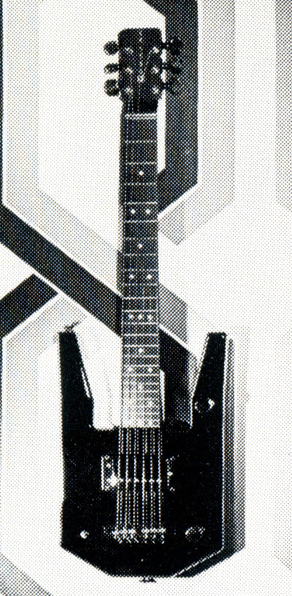 This is an all aluminum guitar with many purposes.  It has a total length of 27 1/4" and width of 8 1/2".  The   Traveler has a density and strength that is unequaled by any guitar of its size.  It is tuned to "G" open first string, and has 24 frets.  Being so compact, this instrument was designed so that artists could make good use of their travel time when composing new songs and melodies.  A speed can be obtained on the Traveler unequaled to other guitars, including up to a full octave in string bending.  The Traveler is a very powerful professional guitar, by far a truly fine instrument in a class by itself.   Although fabricated in a production method only about 10 Travelers have been built to date.