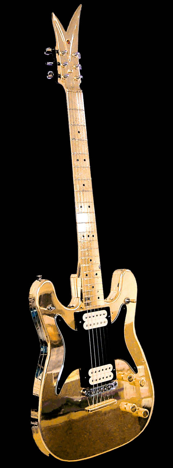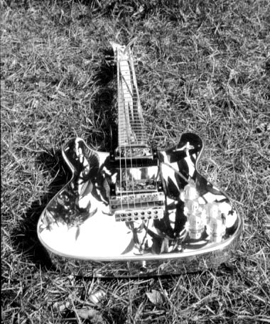 4. Finishes that had never been offered on a guitar before, due to the simple fact that the guitar was made totally of aluminum.  They were available in real gold plating, chrome plating, and various color anodized finishes or a super tough gray/black hardcoat finish.
